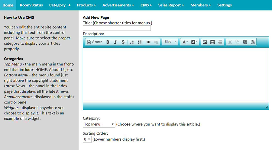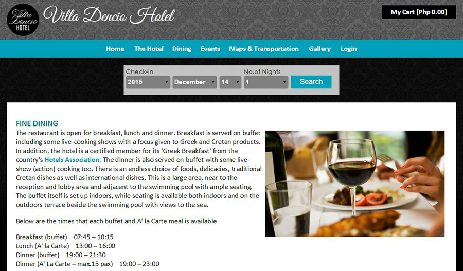 Hotel Management System is an ideal software solution for Hospitality Industry that can be used at hotels, motels, inns, resorts, lodges, hostel, military guest houses, ranch, suites, apartments, medical centres and bed, breakfast operations. This is a comprehensive software suite consisting of integrated modules for various aspects of hotel management. The software is often referred to as Property Management System in the Hotel industry. It includes all the features required in a Hotel Management Software, Hotel Reservation Software, Hotel Reception Software (Front Office), Hotel Point of Sales (Restaurant, Bar, Room Service, House Keeping or any other outlet), Inventory Management System and Hotel accounting software. (Note: I created this system for my Web Development class and may therefore lack some of the features that you may need for your hotel business.)